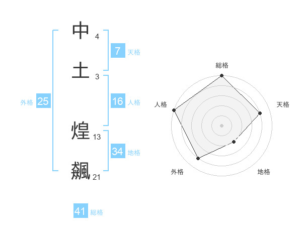 中土 煌飆さんを姓名の画数から五運を鑑定