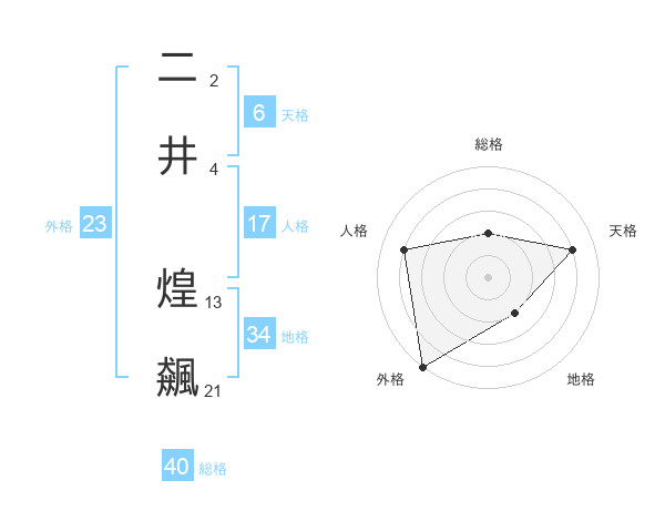 二井 煌飆さんを姓名の画数から五運を鑑定