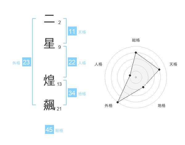 二星 煌飆さんを姓名の画数から五運を鑑定