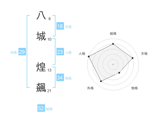 八城 煌飆さんの総格は52画の4点!