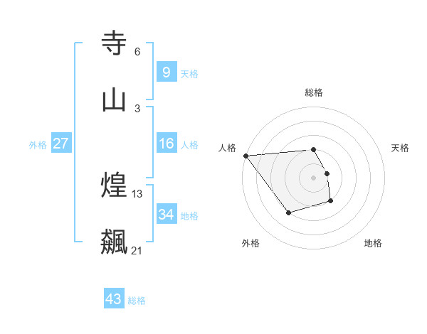 寺山 煌飆さんの総格は43画の2点!