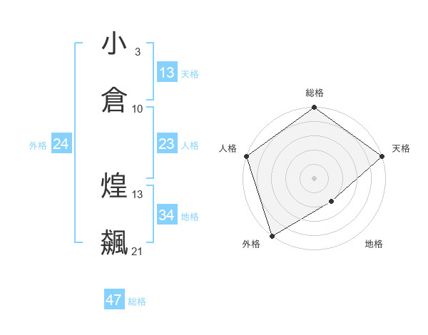小倉 煌飆さんを姓名の画数から五運を鑑定