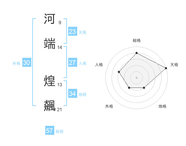 河端 煌飆さんを姓名の画数から五運を鑑定