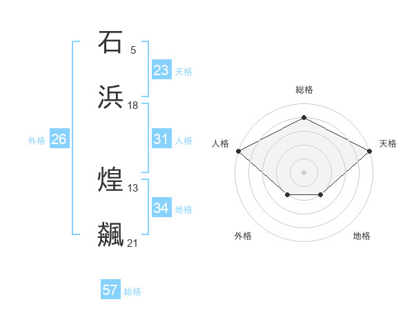 石浜 煌飆さんを姓名の画数から五運を鑑定