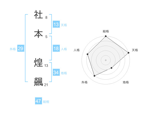 社本 煌飆さんの天格は13画の5点!
