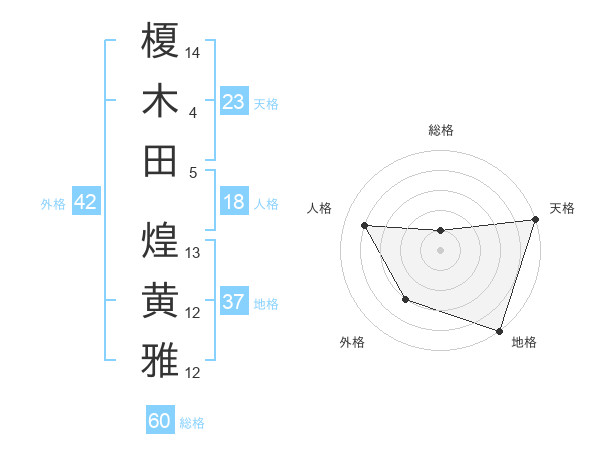 榎木田 煌黄雅さんの総格は60画の1点!