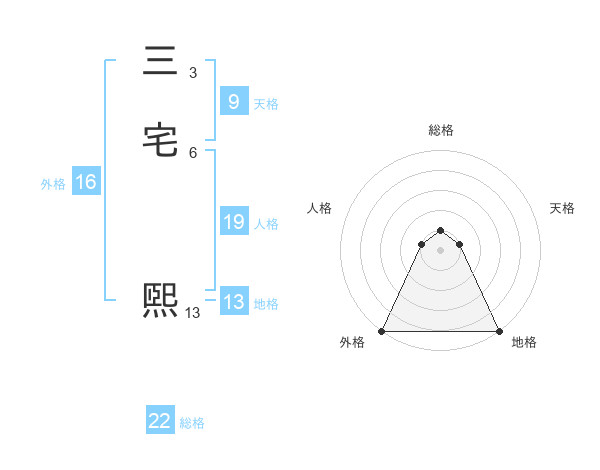 三宅 煕さんの外格は16画の5点!