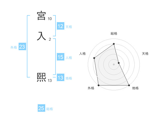 宮入 煕さんの外格は23画の5点!