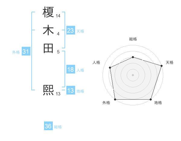 榎木田 煕さんの天格は23画の5点!