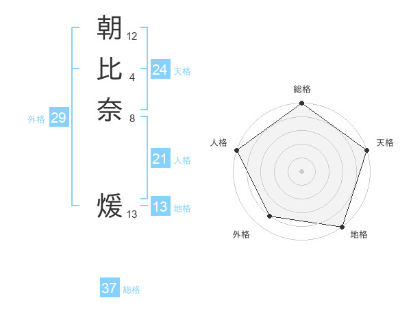 朝比奈 煖さんの総格は37画の5点!