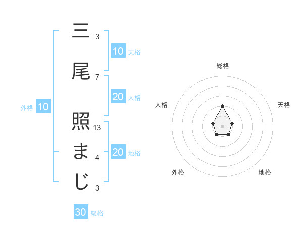 三尾 照まじさんの総格は30画の2点!