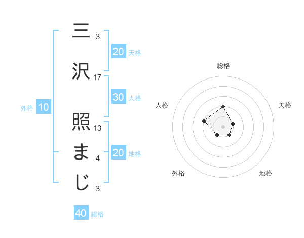 三沢 照まじさんを姓名の画数から五運を鑑定