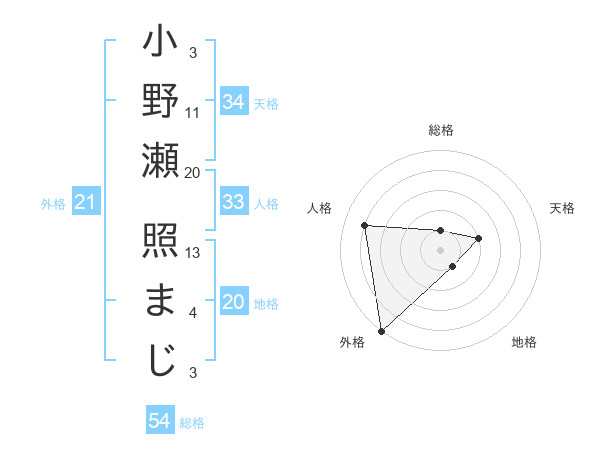小野瀬 照まじさんを姓名の画数から五運を鑑定