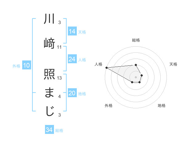 川﨑 照まじさんを姓名の画数から五運を鑑定