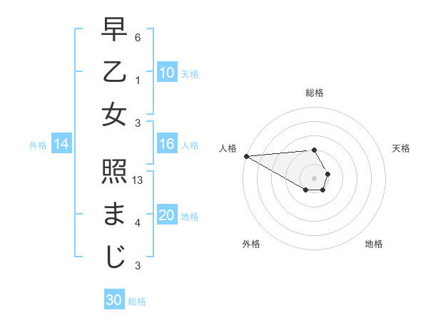 早乙女 照まじさんを姓名の画数から五運を鑑定