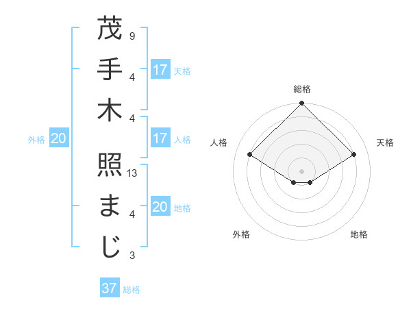茂手木 照まじさんの天格は17画の4点!