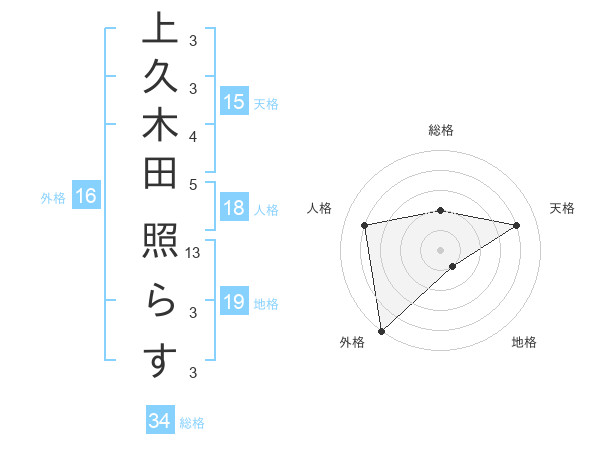 上久木田 照らすさんを姓名の画数から五運を鑑定