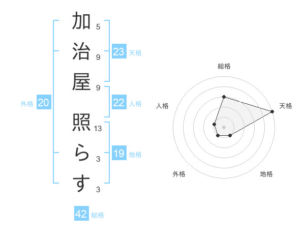 加治屋 照らすさんを姓名の画数から五運を鑑定
