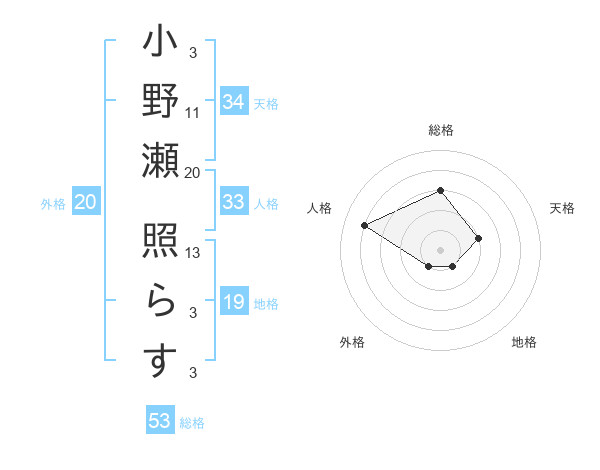 小野瀬 照らすさんを姓名の画数から五運を鑑定