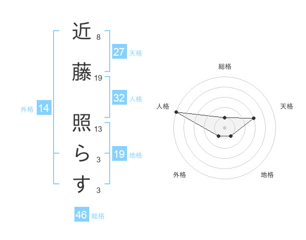 近藤 照らすさんを姓名の画数から五運を鑑定
