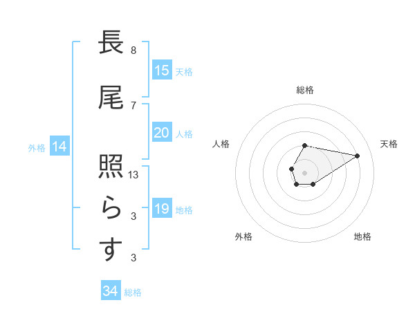 長尾 照らすさんの総格は34画の2点!