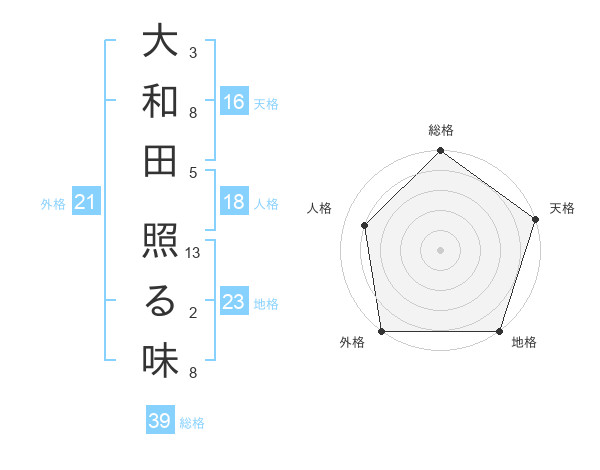 大和田 照る味さんを姓名の画数から五運を鑑定