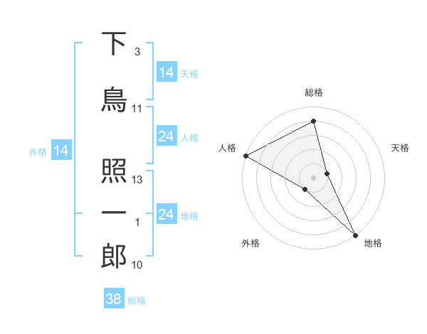 下鳥 照一郎さんを姓名の画数から五運を鑑定
