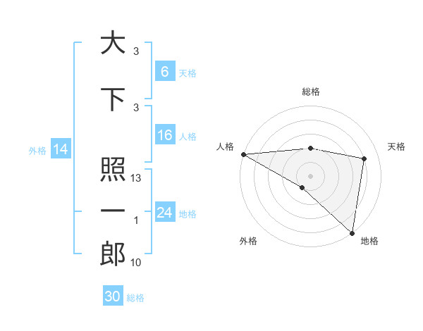 大下 照一郎さんを姓名の画数から五運を鑑定