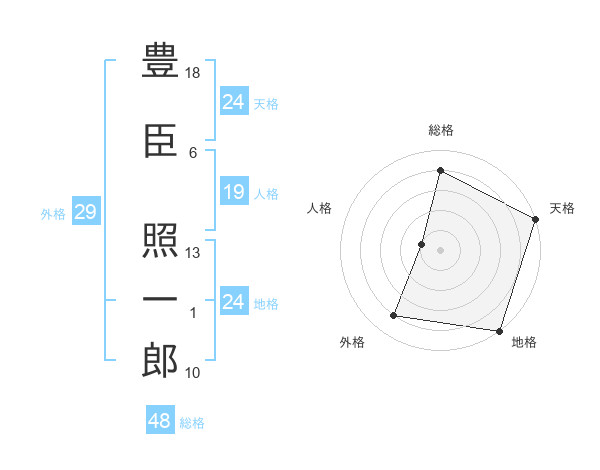豊臣 照一郎さんの地格は24画の5点!