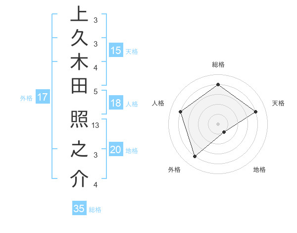 上久木田 照之介さんを姓名の画数から五運を鑑定