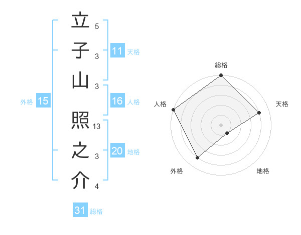 立子山 照之介さんの総格は31画の5点!
