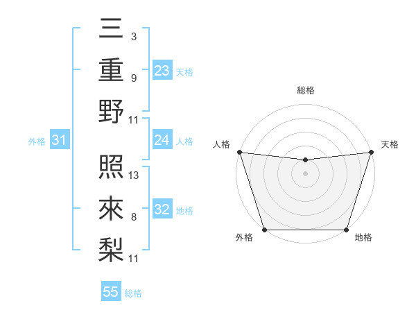 三重野 照來梨さんを姓名の画数から五運を鑑定