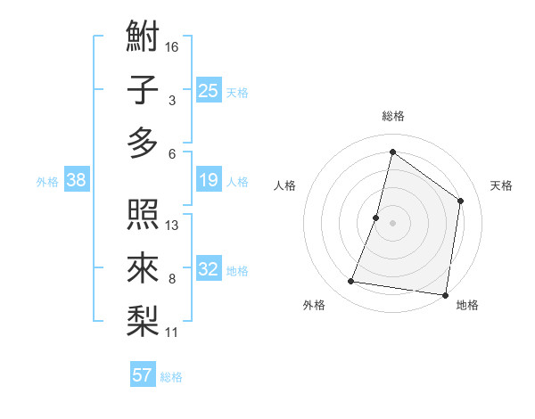 鮒子多 照來梨さんを姓名の画数から五運を鑑定