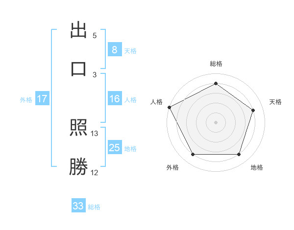 出口 照勝さんの総格は33画の4点!