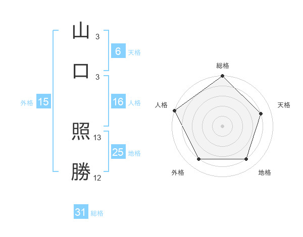 山口 照勝さんの総格は31画の5点!