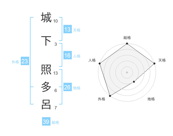 城下 照多呂さんを姓名の画数から五運を鑑定