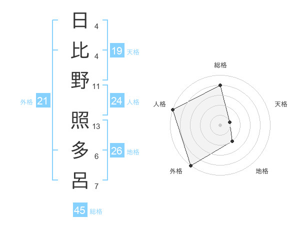 日比野 照多呂さんを姓名の画数から五運を鑑定