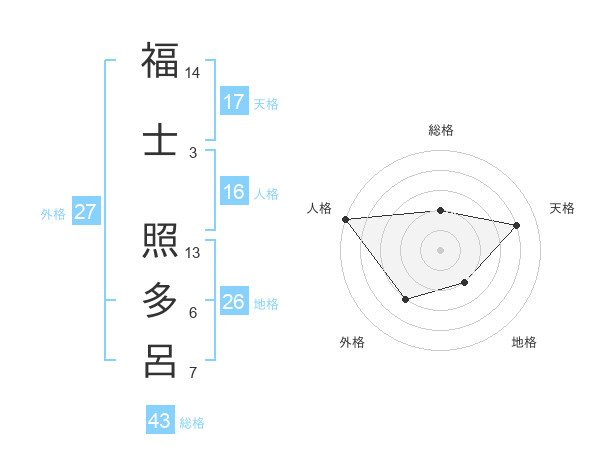 福士 照多呂さんを姓名の画数から五運を鑑定