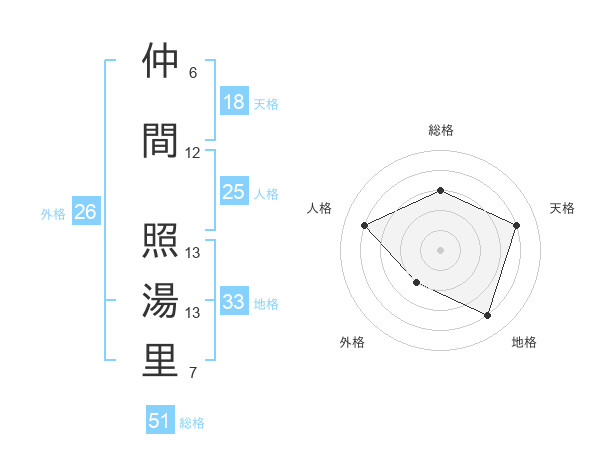 仲間 照湯里さんを姓名の画数から五運を鑑定