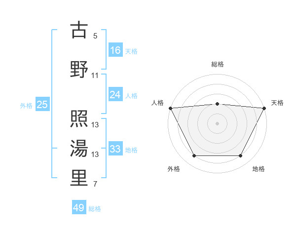 古野 照湯里さんの総格は49画の2点!