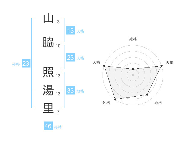 山脇 照湯里さんを姓名の画数から五運を鑑定
