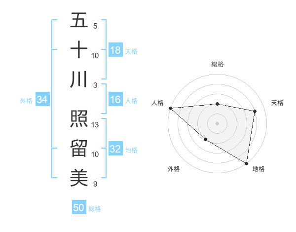 五十川 照留美さんを姓名の画数から五運を鑑定