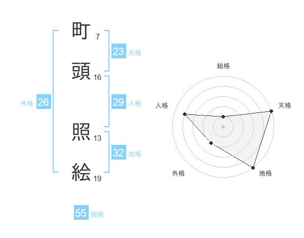 町頭 照絵さんを姓名の画数から五運を鑑定