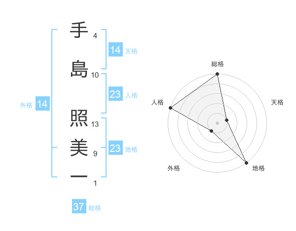 手島 照美一さんの総格は37画の5点!