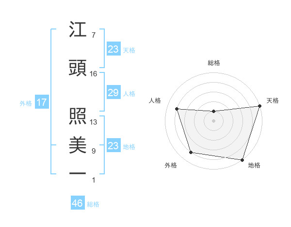 江頭 照美一さんを姓名の画数から五運を鑑定