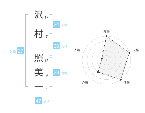 沢村 照美一さんの総格は47画の5点!