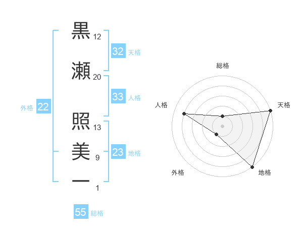 黒瀬 照美一さんを姓名の画数から五運を鑑定