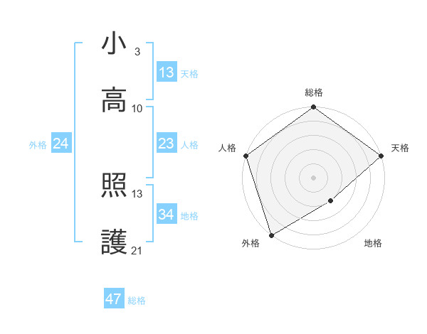 小高 照護さんの総格は47画の5点!