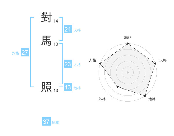 對馬 照さんの総格は37画の5点!