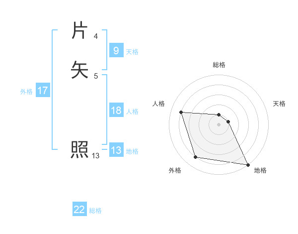 片矢 照さんの地格は13画の5点!